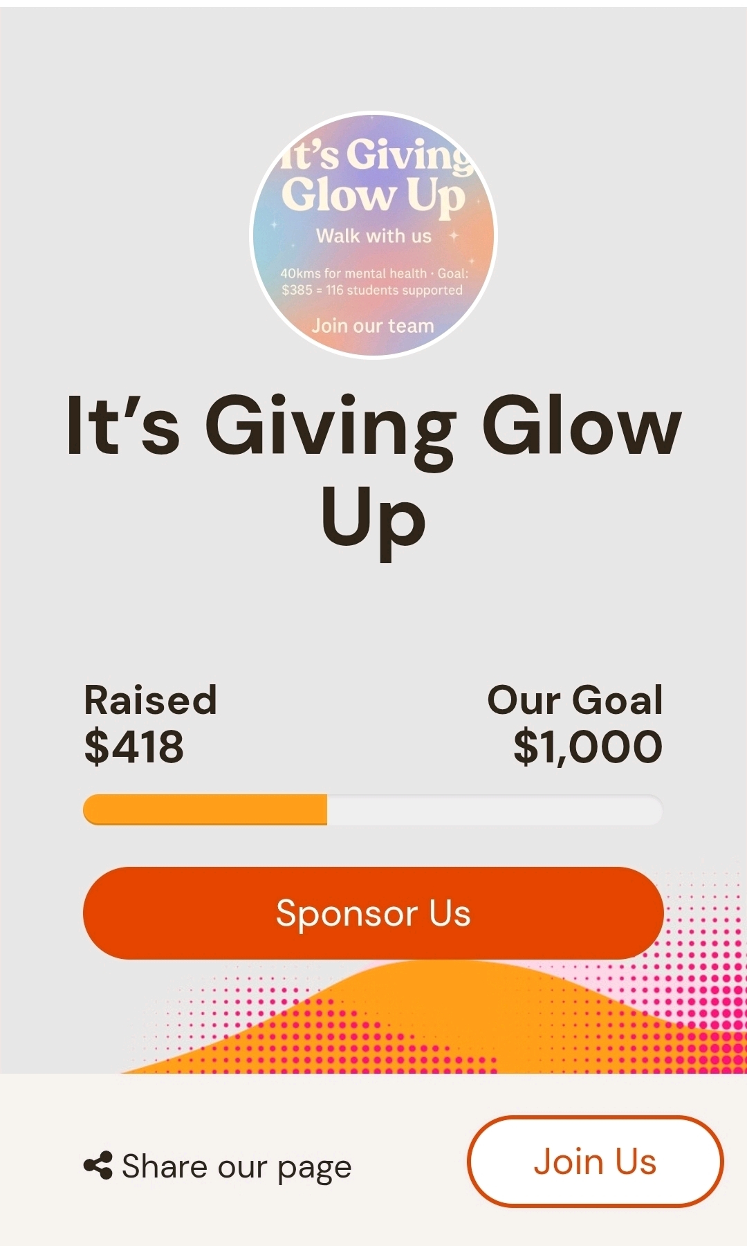This October, our team It’s Giving Glow Up ✨ is walking 40kms for mental health — and we’d love YOU to join us.